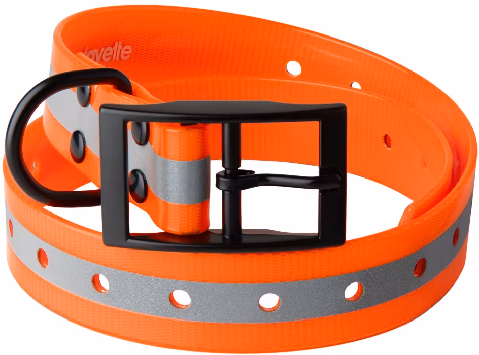 Lafayette Hundhalsband Orange med reflex är 725 mm långt och 25 mm brett. Detta hundhalsband går praktiskt nog att klippa av för önskad längd.