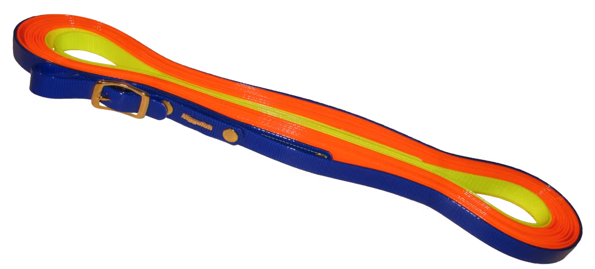 - Bakre del (2 m): Fluorescerande gul Biothane som gör linans slut tydligt synligt.